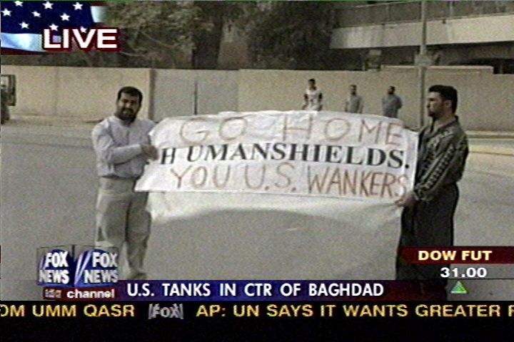 Some kneepads for Janeane Garafalo, please. The big-mouth "actress" (comedian) had said that she would "go to the White House on my knees on cut glass and say, 'Hey, you and Thomas Friedman were right I shouldn't have doubted you' " if the Iraqis (once liberated) took to the streets and embraced our soldiers. Ms. Garafalo, please report to the White House lawn. Just remember that this isn't the President who likes hummers from fat, dark-haired women while you're there. We wouldn't want to revisit that.